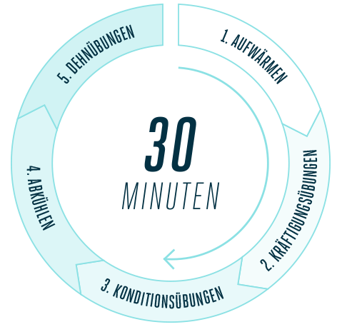 Im Mittelpunkt steht bei uns Zirkeltraining mit 30-minütigen Sporteinheiten. Wir haben das am Markt erprobte Konzept weiterentwickelt und um ein schlaues Ernährungsprogramm samt eigenen Protein-Produkten und optionale Kurse wie Yoga, Zumba, Bauch-Beine-Po oder TRX-Training ergänzt.